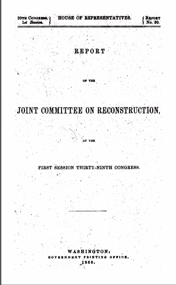The findings of the joint congressional committee that, during the 39th Congress, drafted the 14th Amendment.